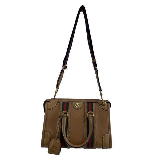 Gucci Beige Leather Bauletto Double G Small Top Handle Tote Crossbody Bag
