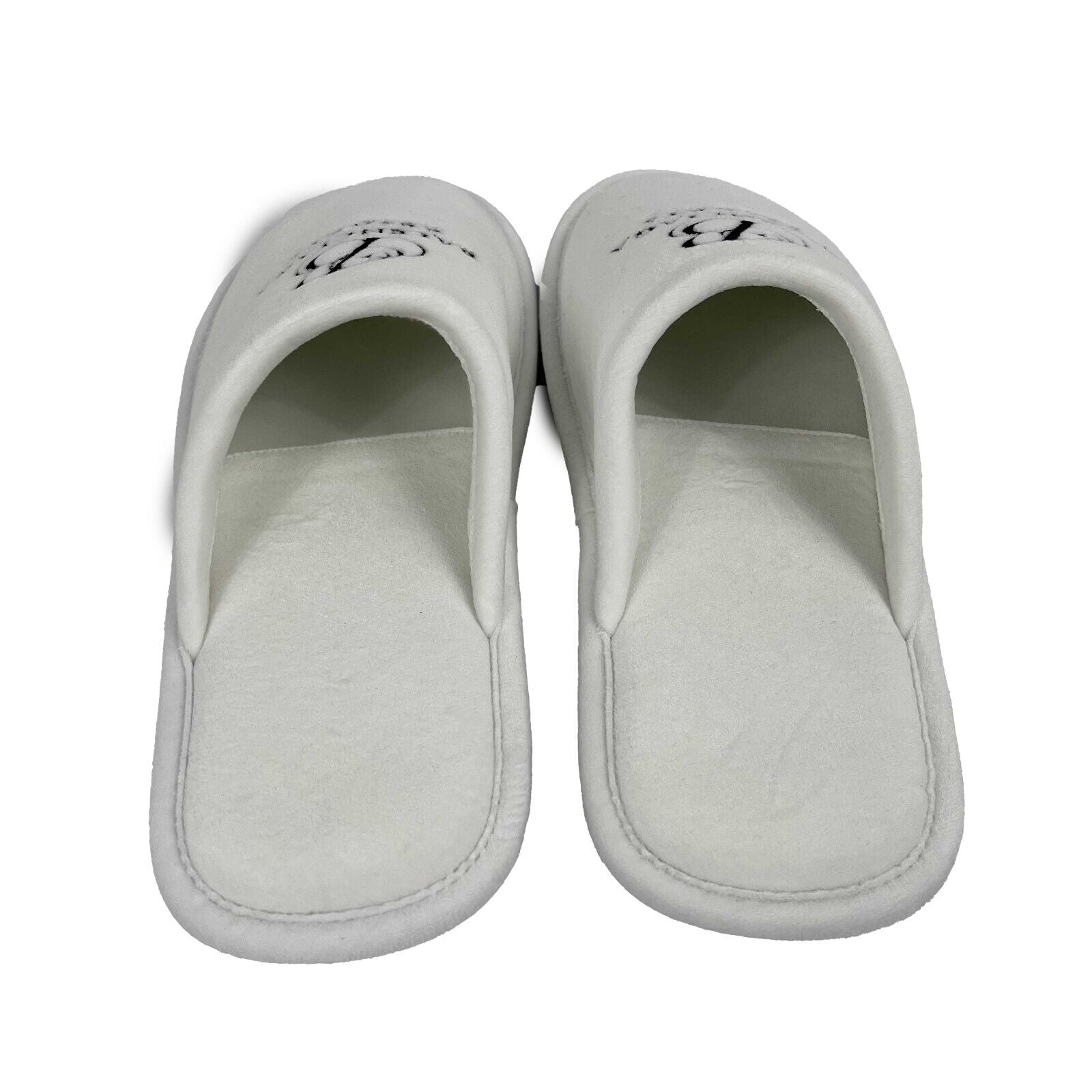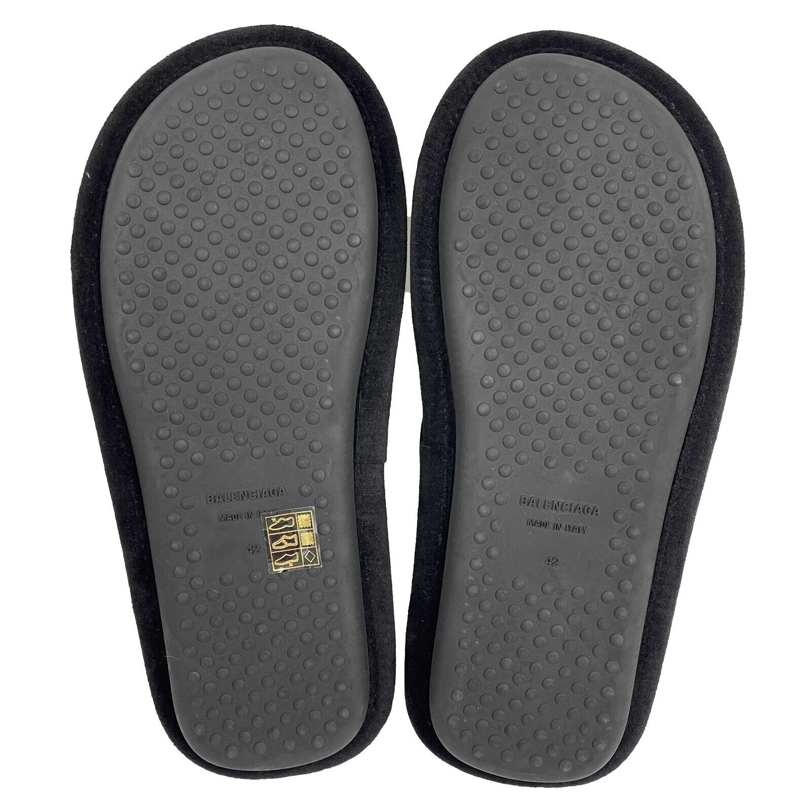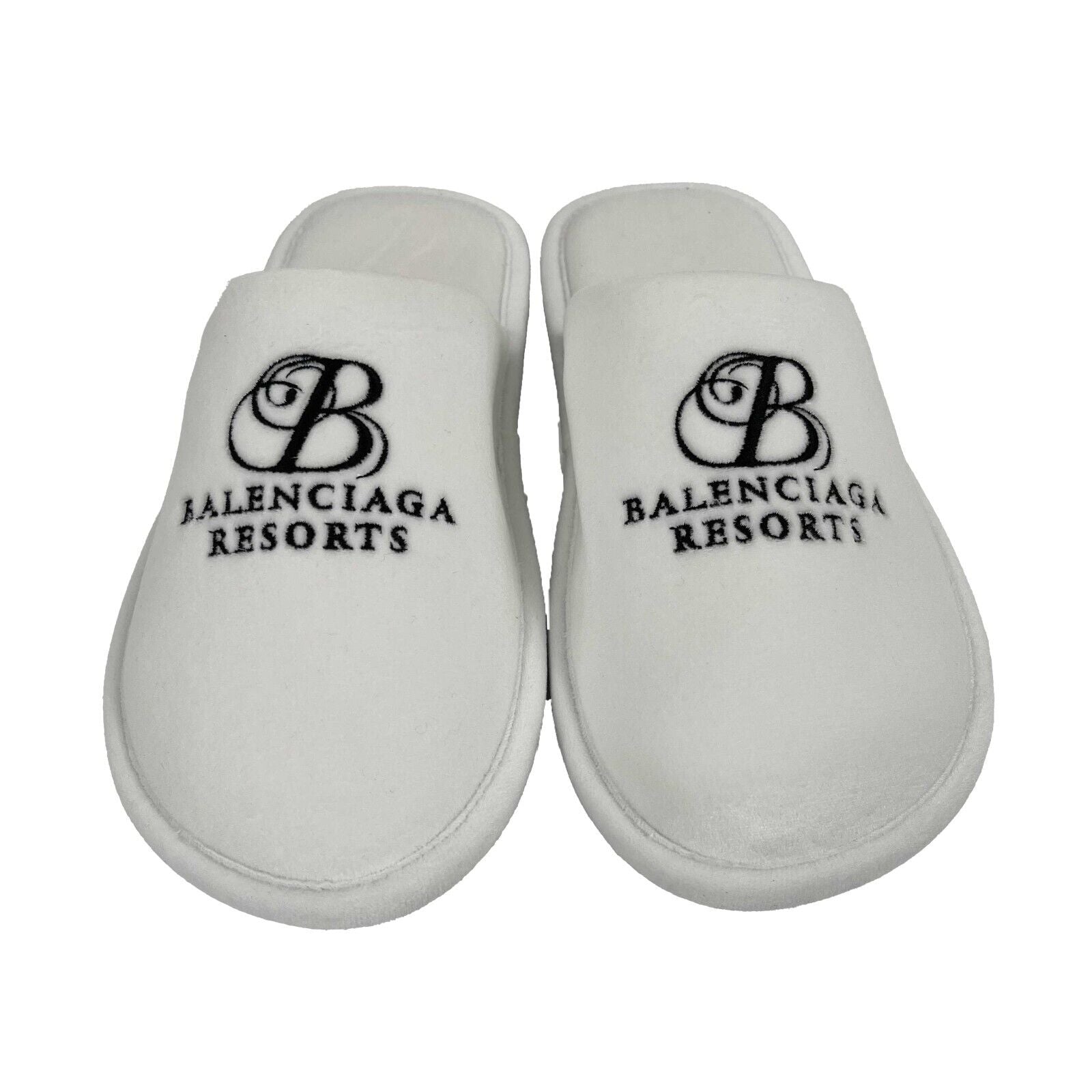* Balenciaga soft embroidery slipper in white velour upper with treaded rubber sole.
