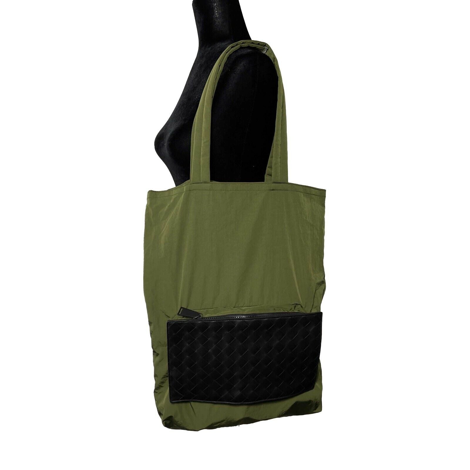 Bottega Veneta - New w/ Tags - Men's Unisex Foldable Nylon Nappa Intrecciato Tote Shopping - Khaki Green, Black - Handbag