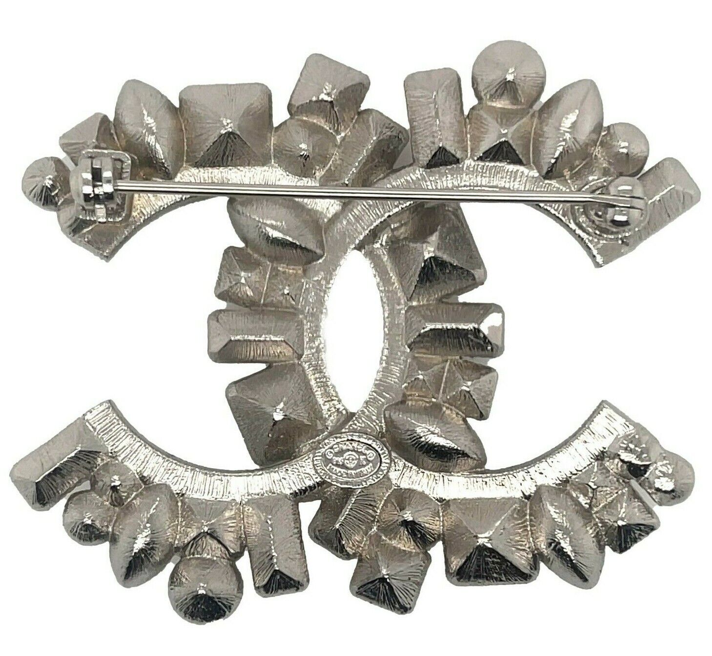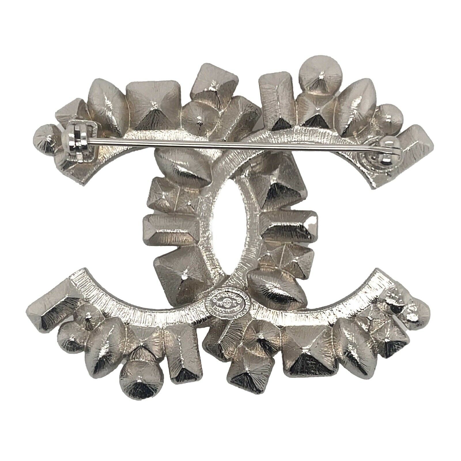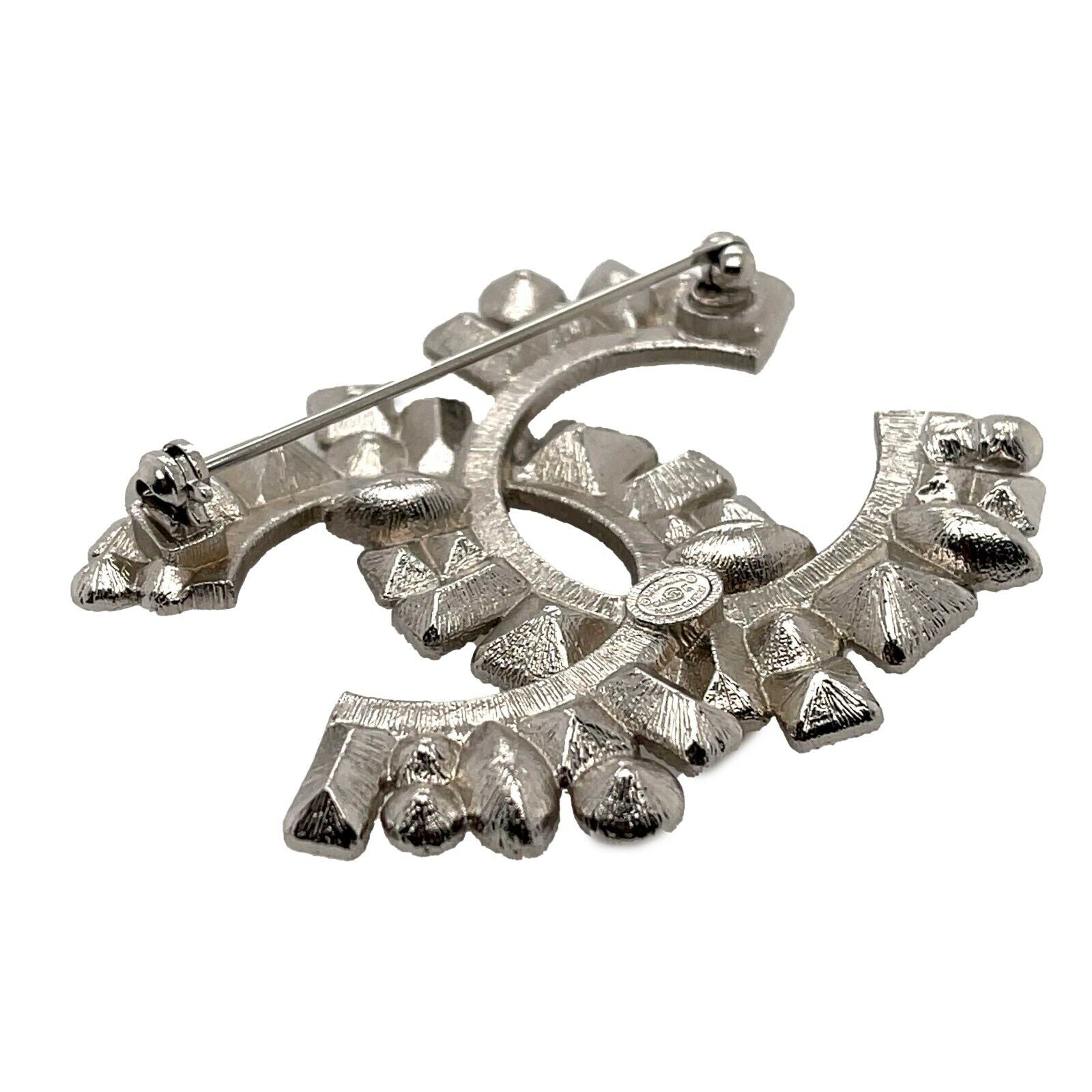 CHANEL - Pristine - 14K Clear and Black Strass CC Logo - Silver, Clear, Black - Brooch