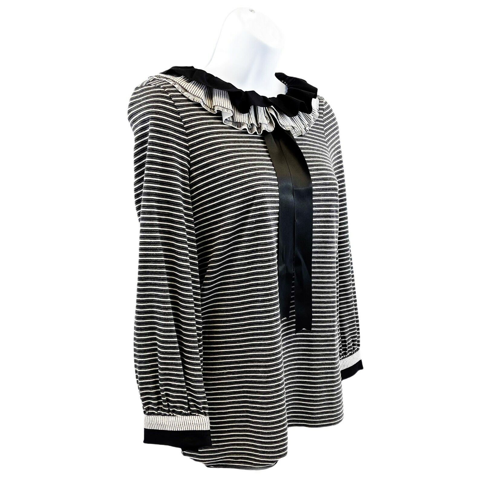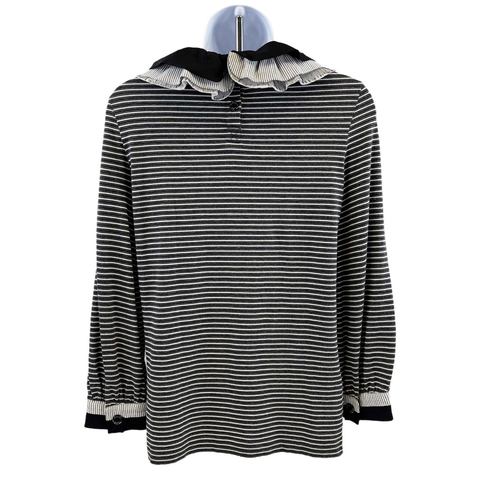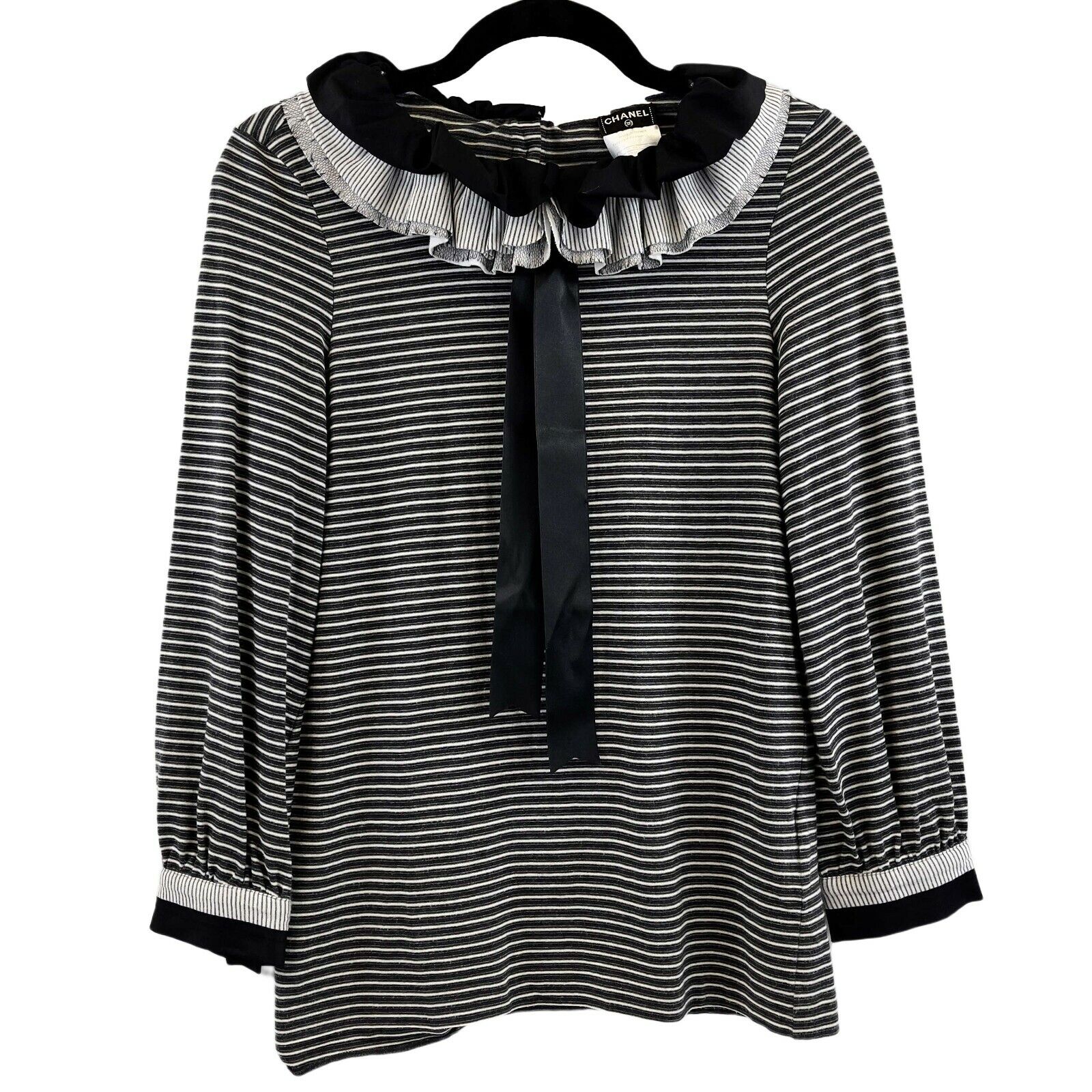 Chanel - 2008 Fall/Winter Grey-White Striped Blouse - Detachable Collar 36 US 4