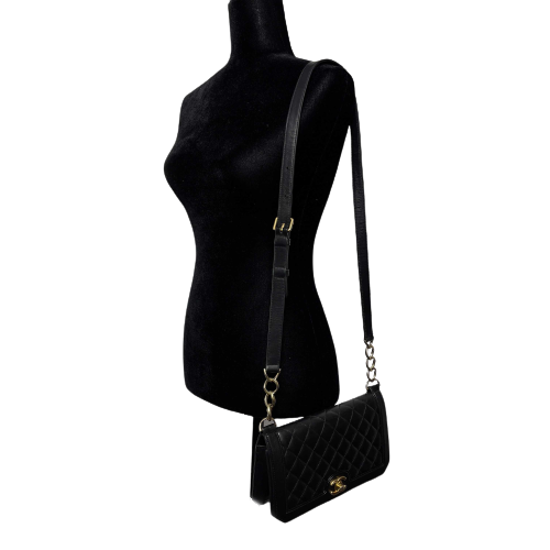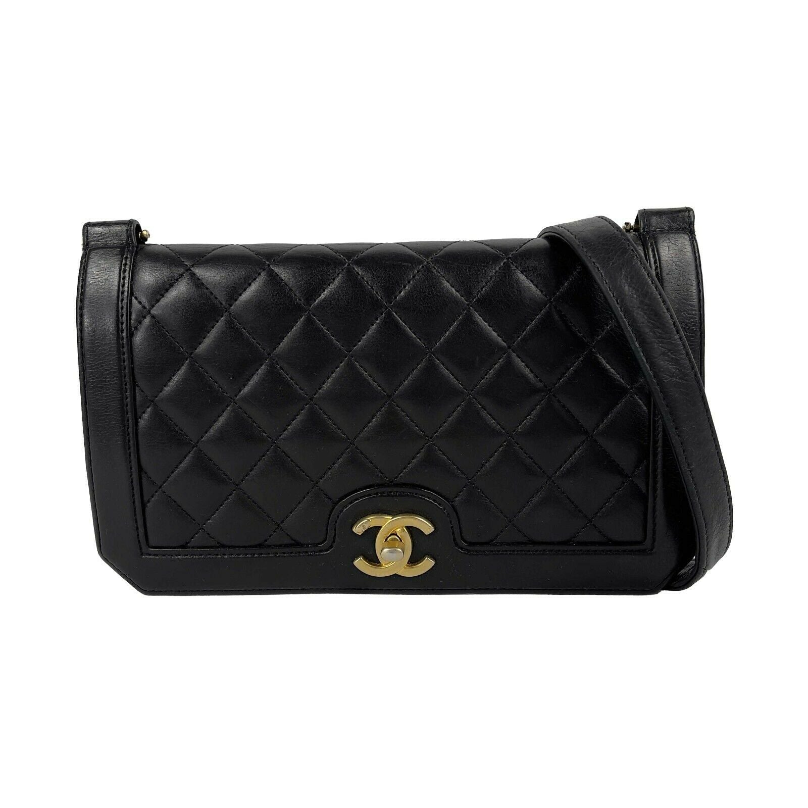 CHANEL - Black Quilted Diamond Flap - CC Calfskin 3 Ring Crossbody