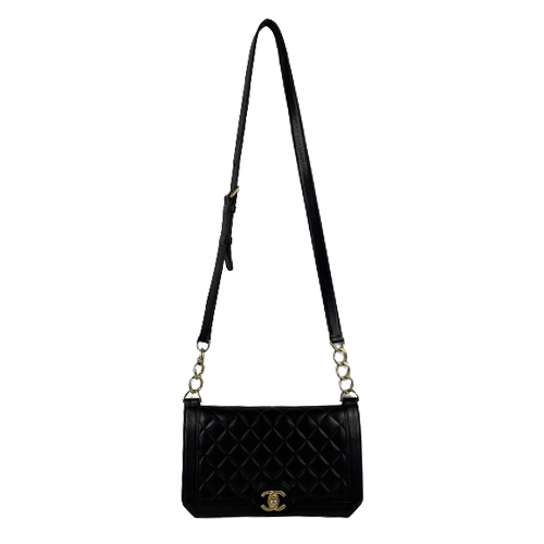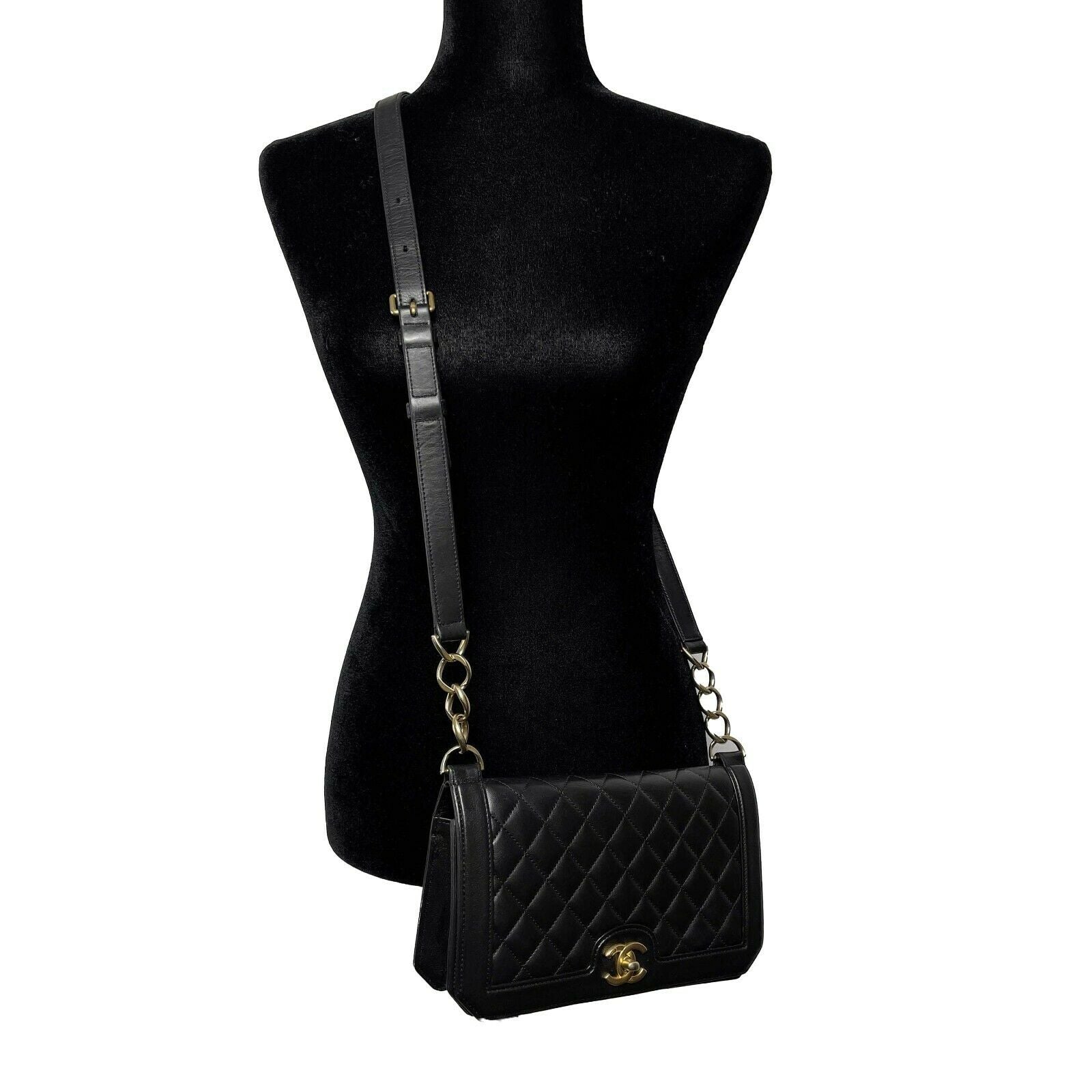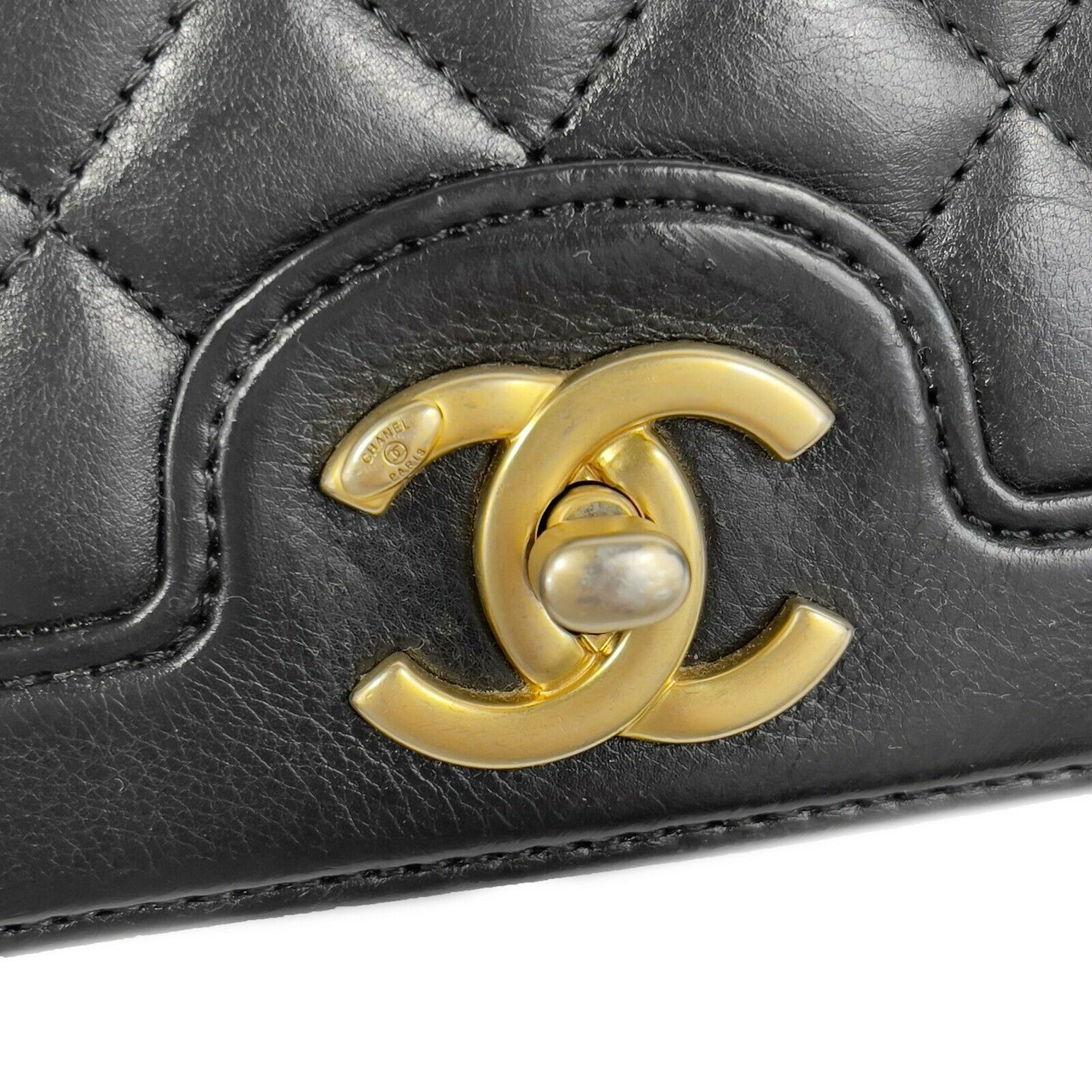 * This bag is crafted in black lambskin leather with a quilted diamond pattern and CC logo turn lock closure.