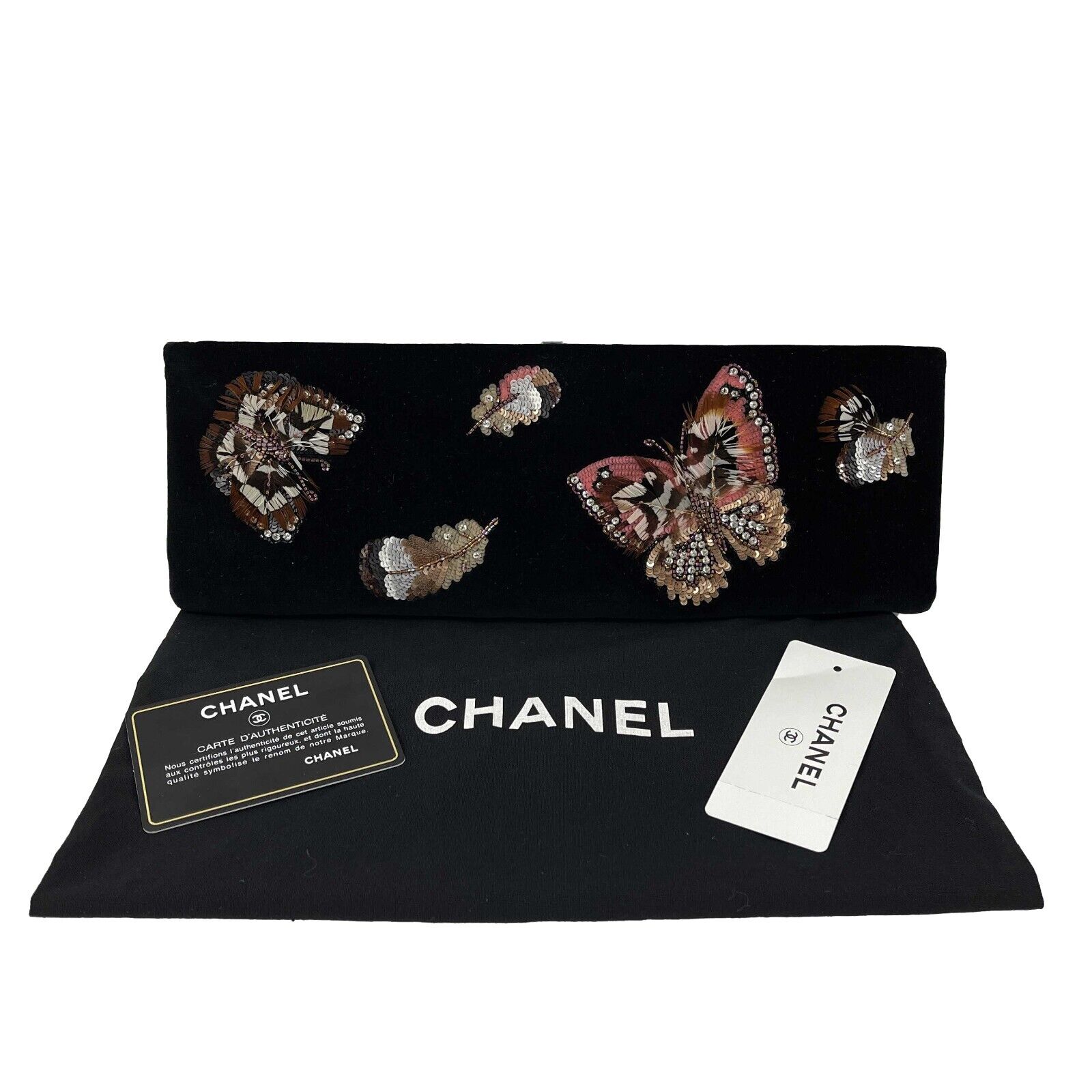 CHANEL - New w/ Tags - Velvet Embellished Butterfly Minaudiere Clutch - Black - Handbag