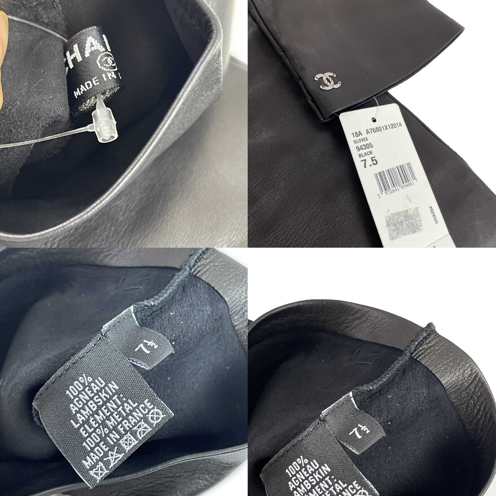 Chanel New w/ Tags Leather Fingerless Long Gloves Black 18A 7.5