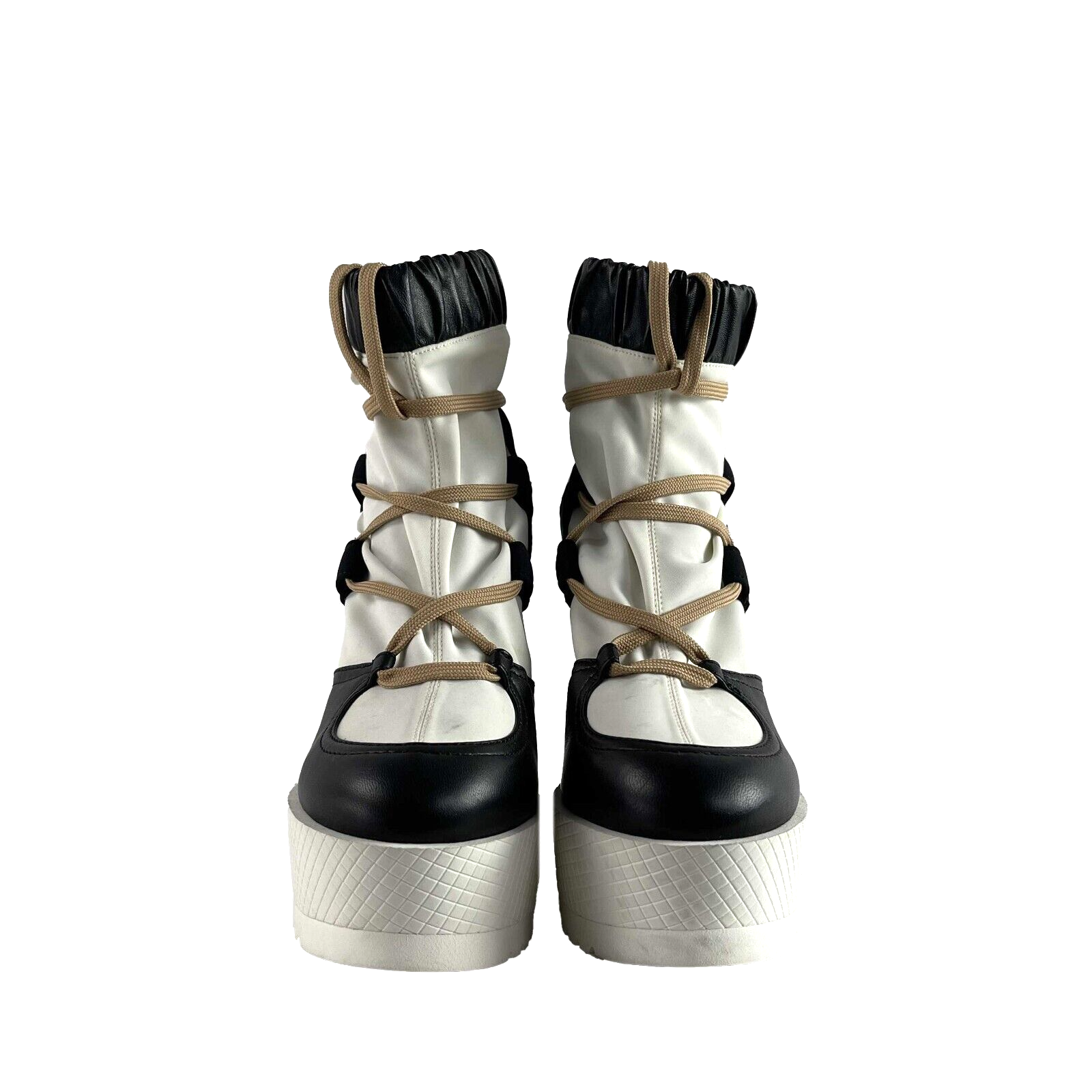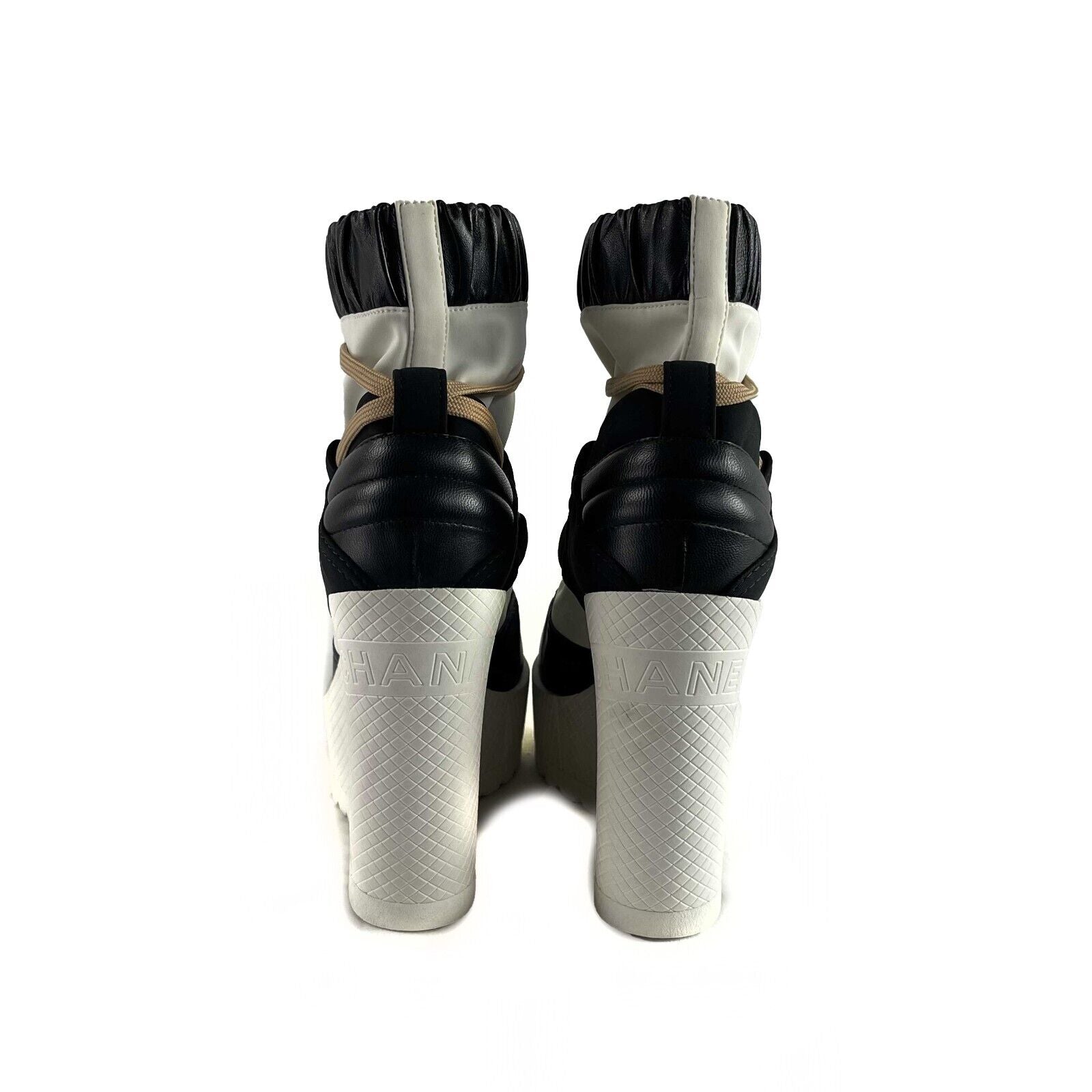 Chanel - Good - Patent Calfskin Runway Wedge Short Platform Boots - White, Black - 37 - Shoes