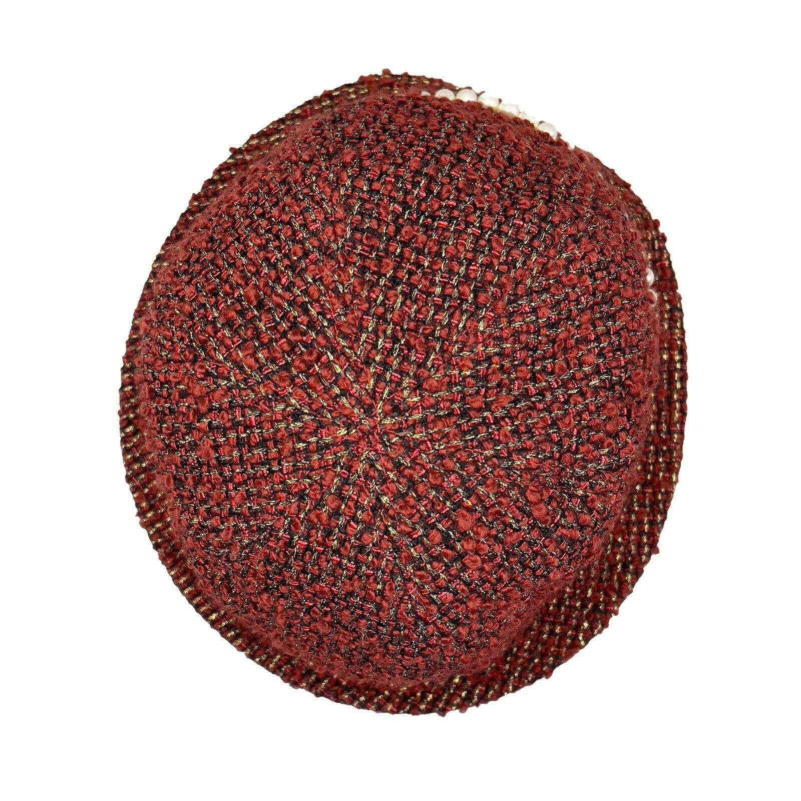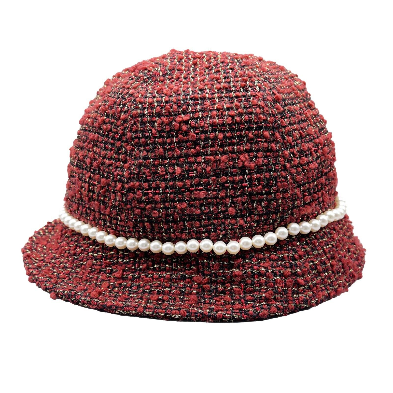 Chanel - Excellent - Tweed Boucle Bucket Pearl - Maroon - 57 - Hat