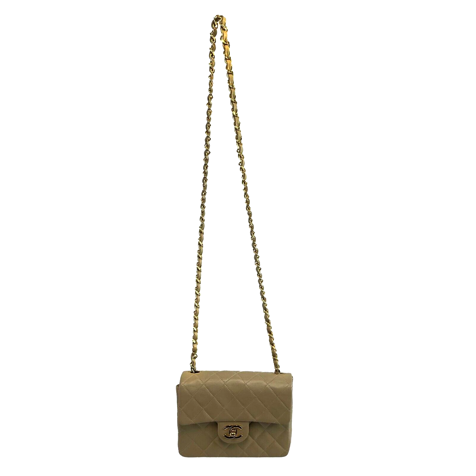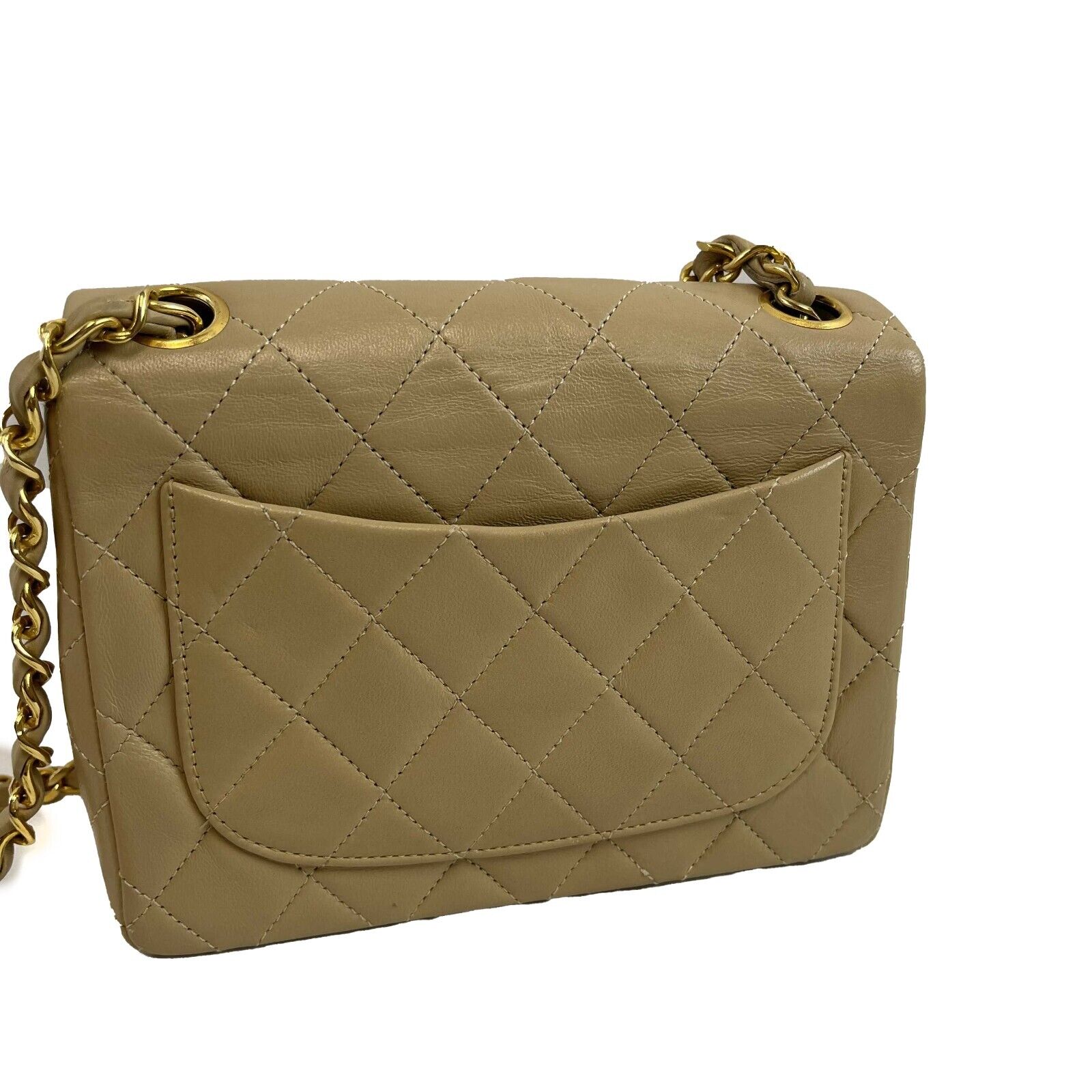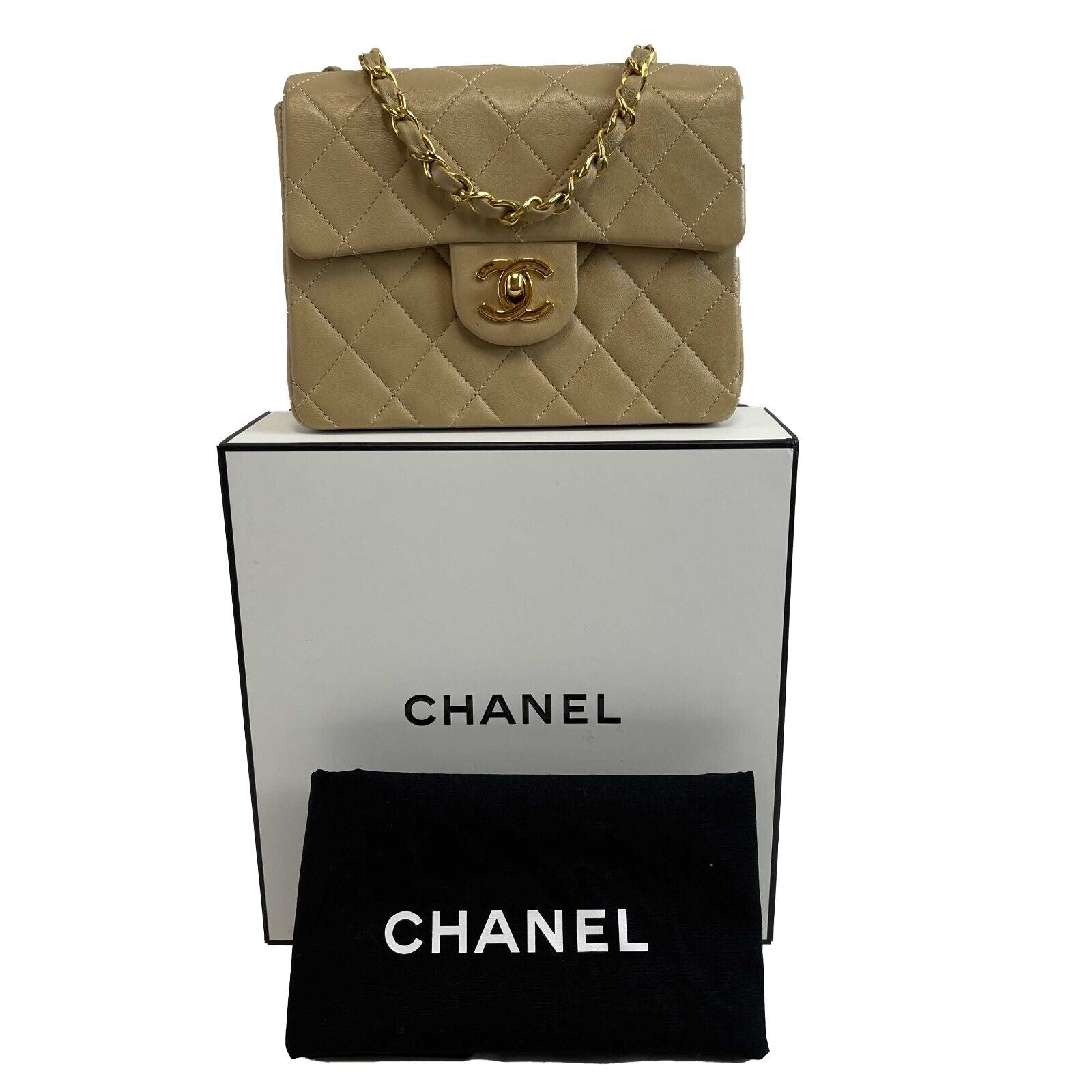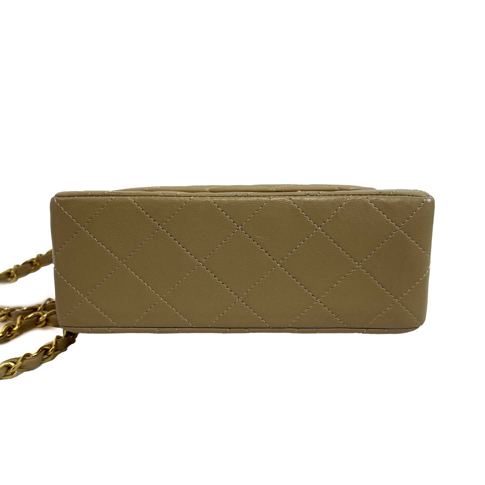 Chanel Vintage Classic Single Flap Mini Lambskin Beige Handbag Crossbody BOX