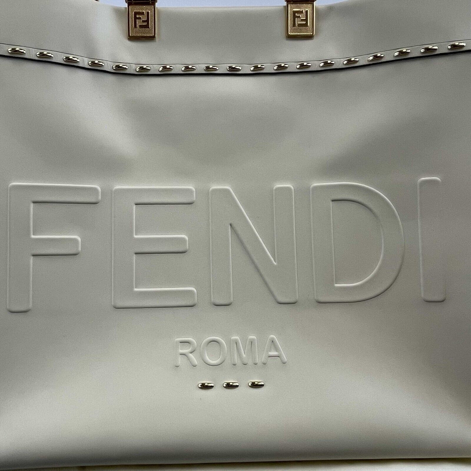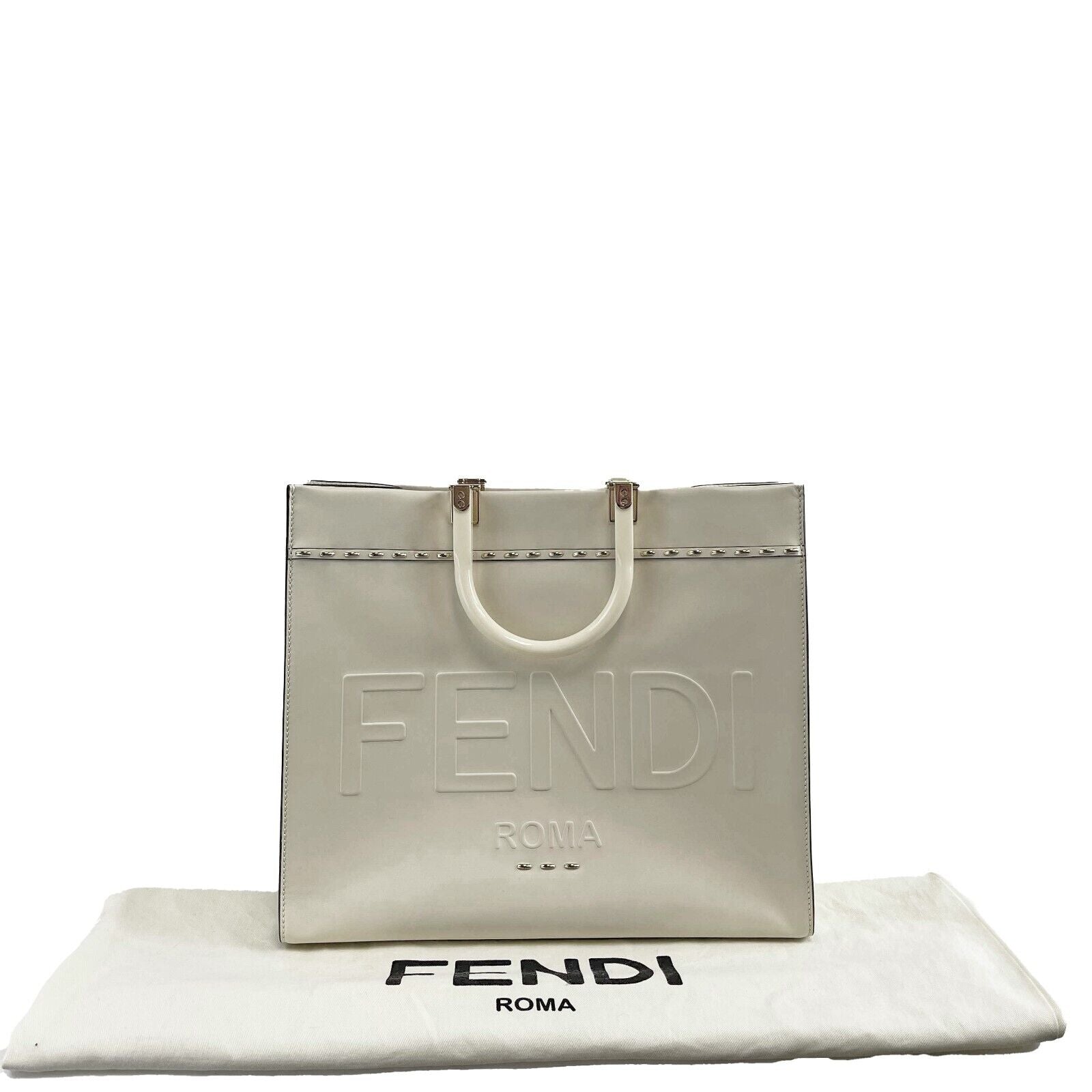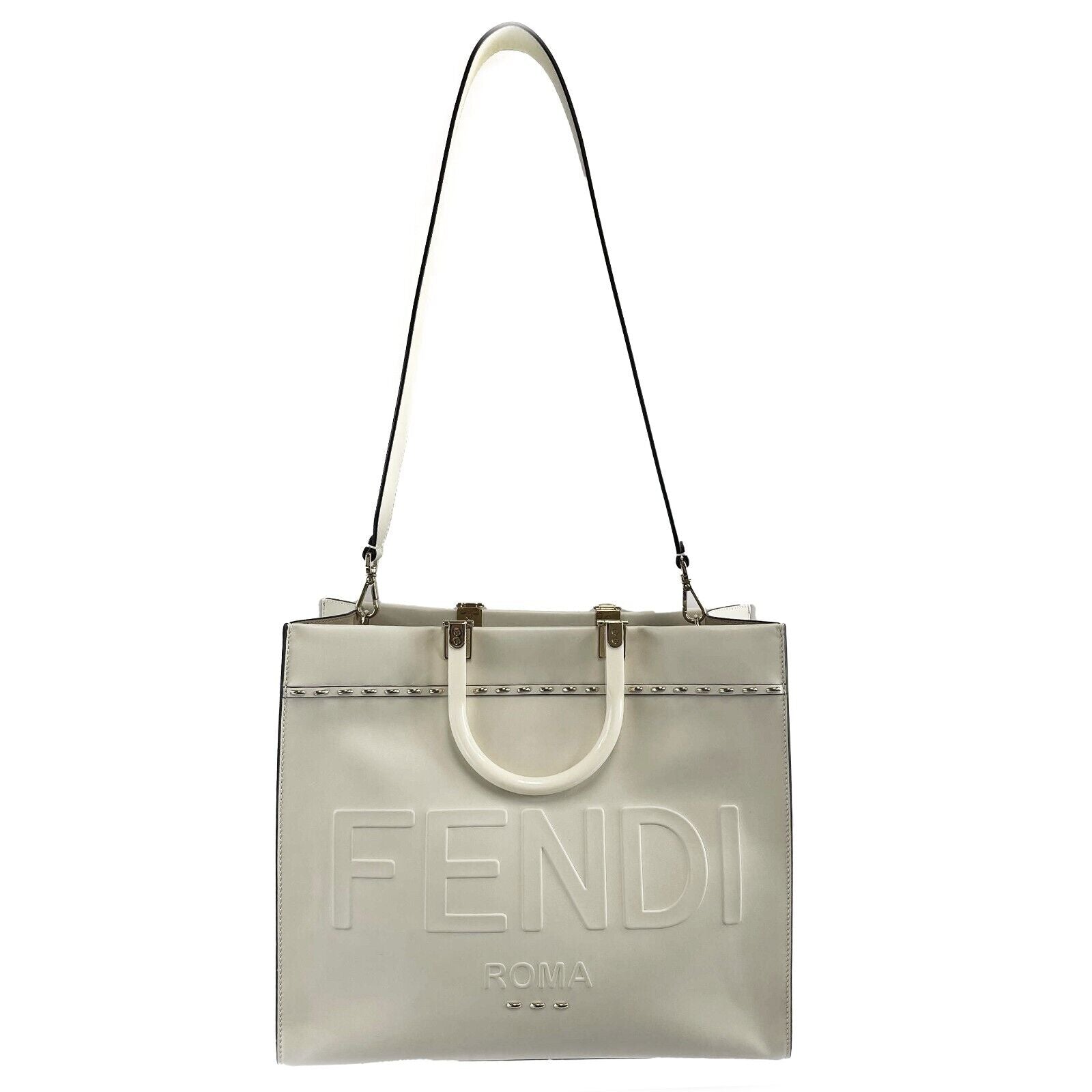 FENDI - Plexiglass Handle Sunshine Medium Cream Shopper Tote w/ Shoulder Strap