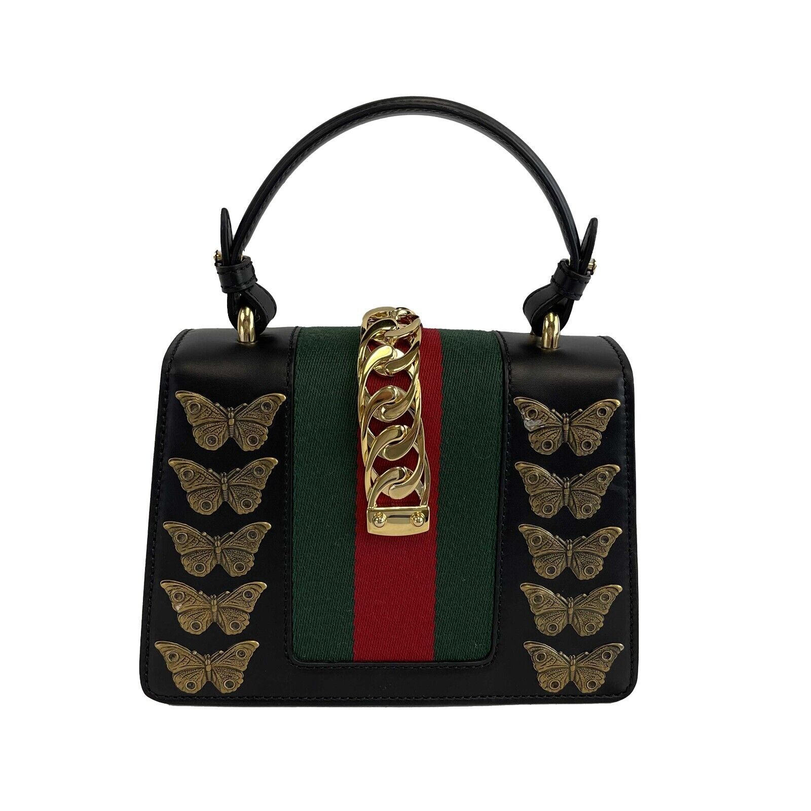 Gucci - New w/o Tags - Black Sylvie Animalier Mini Top Handle w/ Strap