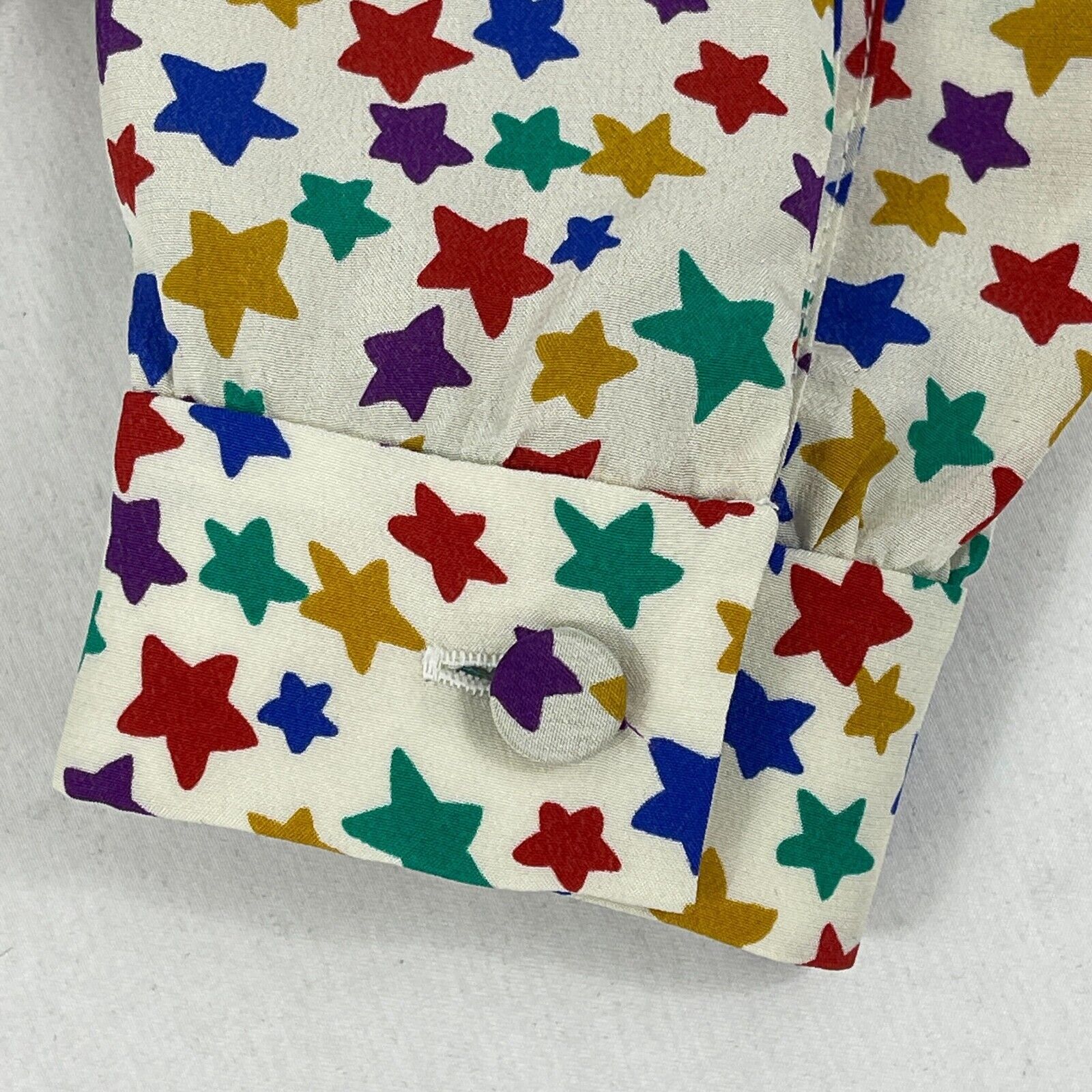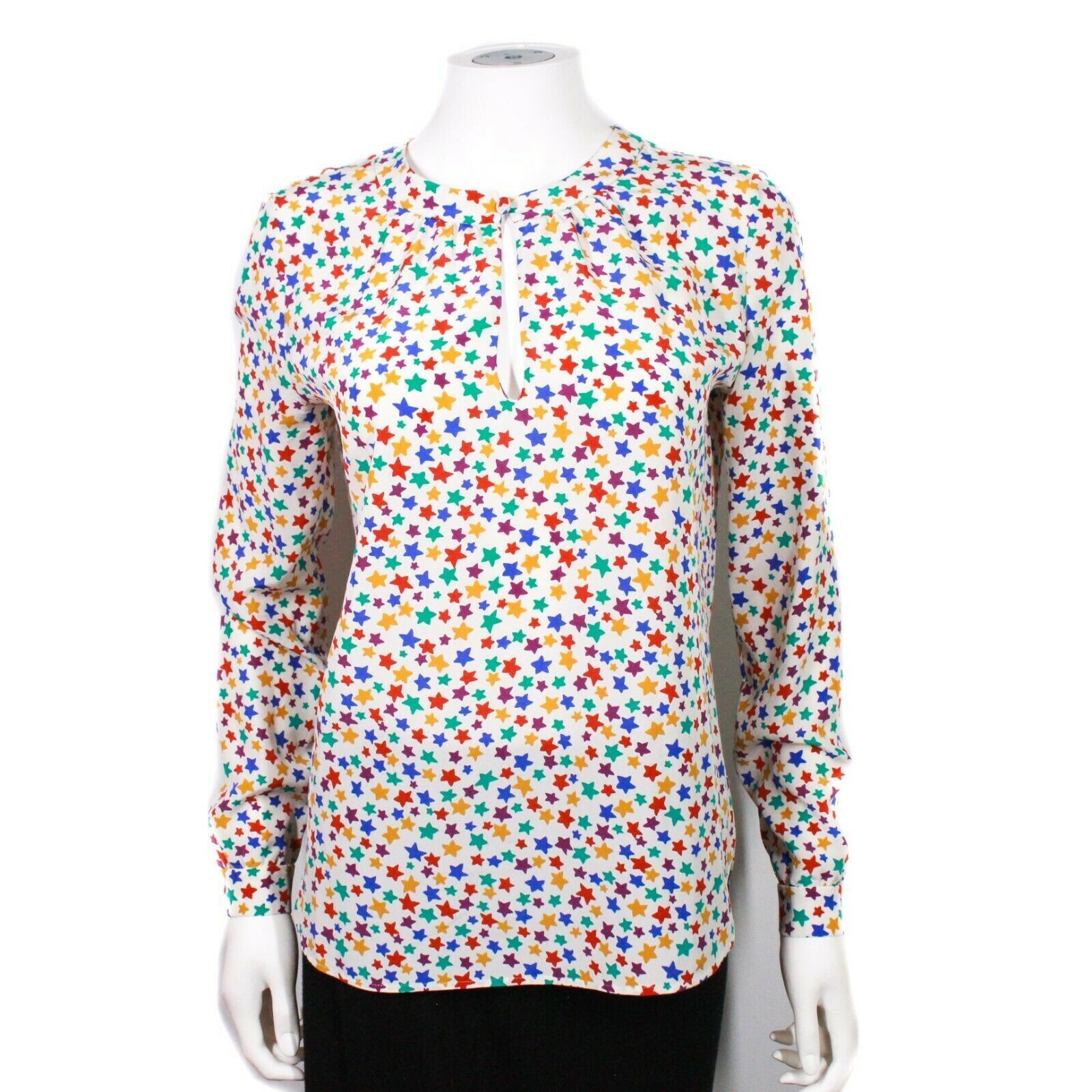 * This Saint Laurent long sleeve blouse features a star print multi-color design.